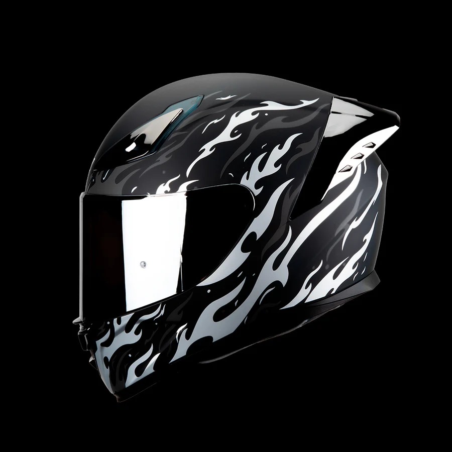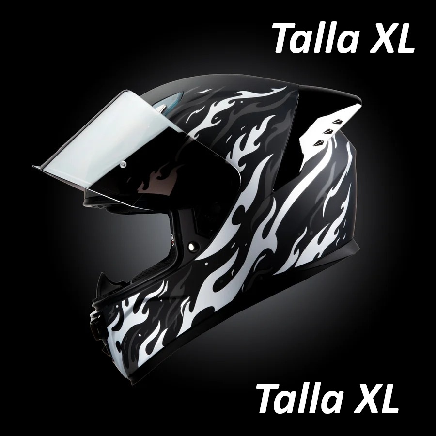 Casco Integral ONIX Flamas Blancas: Certificado DOT | Talla XL