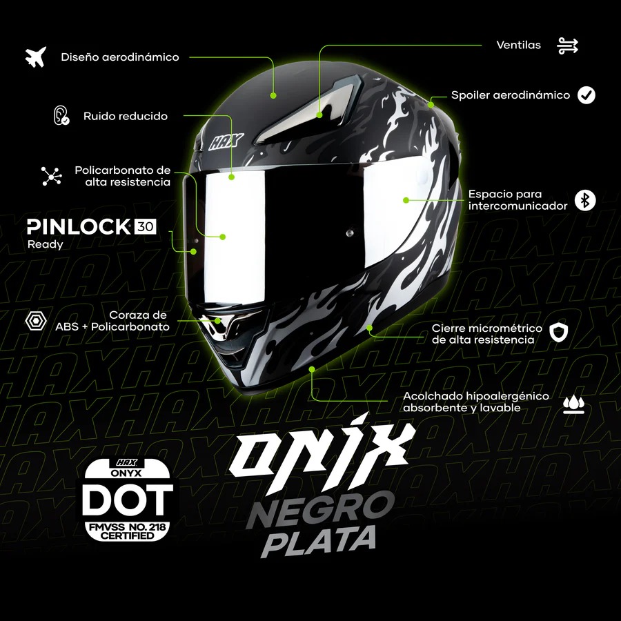 Si buscas un casco que combine seguridad implacable con una presencia visual imponente (ese diseño de flamas es puro carácter), el Hax ONIX es tu elección. No solo cumple con la norma, ¡la redefine con estilo!